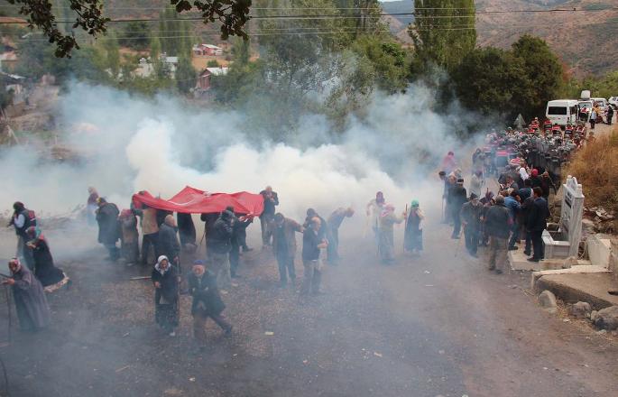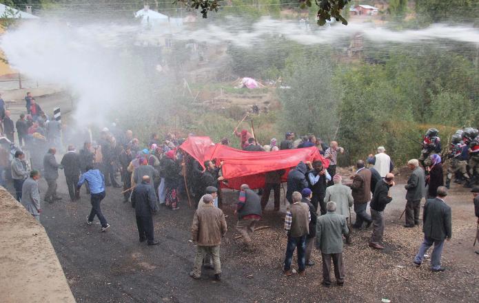 Bu Sabah müteahhit firma yetkilileri jandarma eşliğinde köye gitti. Polis ekipleri de jandarmaya destek verdi. Köylüler girişi barikatla kapatıp bayrak açarak yine geçişe izin vermek istemedi. Köylüleri ikna etme çalışmaları sonuç vermeyince ekipler müdahale etti. Sivas Emniyet Müdürlüğü’ne ait bir TOMA tazyikli su sıkarken, jandarma da gaz bombasıyla müdahale etti. Köylüler de taş atarak karşılık verdi.