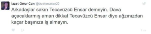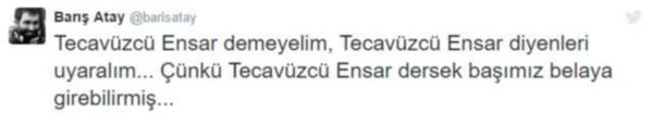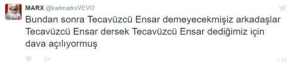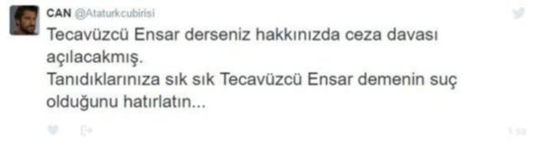 Sosyal medyada konuyla ilgili “uyarı” paylaşımları yapılınca “Tecavüzcü Ensar” tabiri Twitter’da Trend Topic (En çok konuşulan konu) listesinde birinci sırada yer aldı.